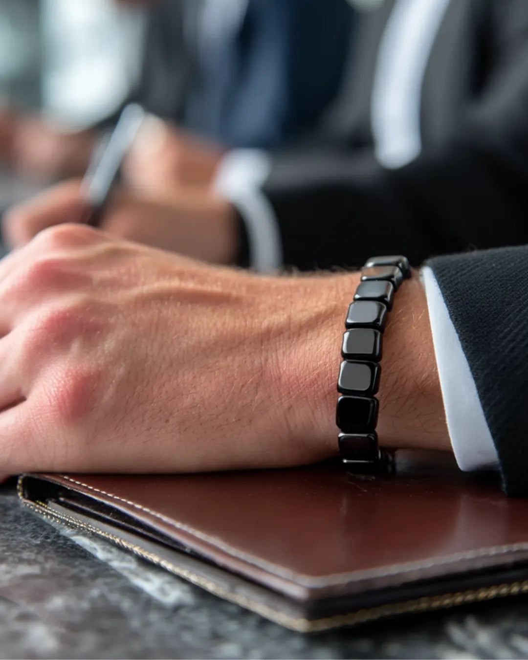 "Hemastone is more than just a bracelet—it’s a statement piece. Combining sleek design with the legendary properties of hematite, it bridges style and strength for the modern man."